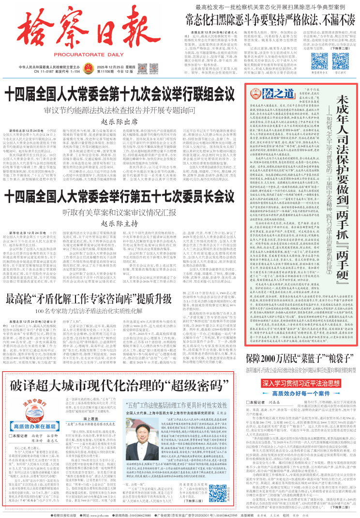 “孩子们成长得更好,是我们最大的心愿。”党和国家历来高度重视未成年人健康成长。近日,习近平总书记作出重要指示强调,坚持把未成年人思想道德建设作为战略性、基础性工作来抓,合力为未成年人健康成长营造良好社会环境。未成年人思想道德建设工作座谈会强调,加强未成年人保护和违法犯罪防治,引导未成年人树立法治观念。《中共中央关于制定国民经济和社会发展第十五个五年规划的建议》也明确提出,“强化未成年人违法犯罪预防和治理”。这些都对未成年人工作提出新的更高要求。作为未成年人司法保护的重要力量,检察机关要增强“预防就是保护、惩治也是挽救”的意识,坚定不移实行“教育、感化、挽救”方针,坚持未成年人权益保护和犯罪防治“两手抓”“两手硬”,在加强未成年人权益保护的同时,持续强化未成年人违法犯罪预防和治理,更好以检察履职护航未成年人健康成长。
