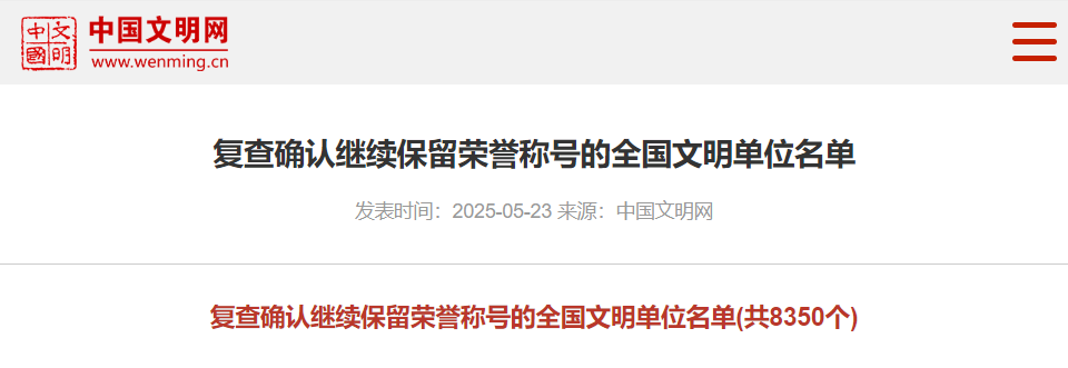 5月23日,蒸湘区检察院经复查确认继续保留“全国文明单位”称号!