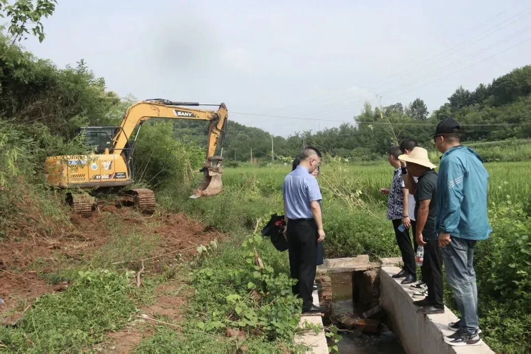 2025年8月,检察官在雨母山镇验收整改水塘现场。在多方努力下,曾经被破坏的36口水塘状况更胜往昔,断流的水系重新连通。