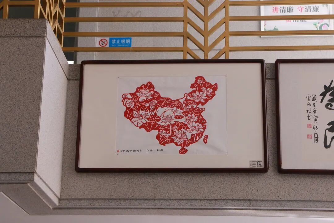 “越清廉,越轻松”,不管是电梯口的廉语,还是清廉长廊的廉洁小故事,抑或是“廉政墙”、“清廉读书专栏”,清廉文化自然融入机关建设,在潜移默化中入心入脑。“莲(廉)满山河,正气浩然。”荣获省级“书画诗词摄影展(赛)”奖项剪纸《赤诚中国心》的创作者刘鑫在身边的风景线里寻找灵感。