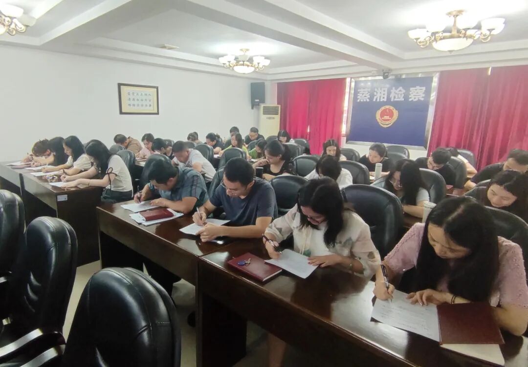 为进一步深入学习贯彻党的二十届三中全会精神,检验和巩固政治轮训成果,9月29日下午,蒸湘区人民检察院组织全院干警和书记员进行集中理论知识测试。