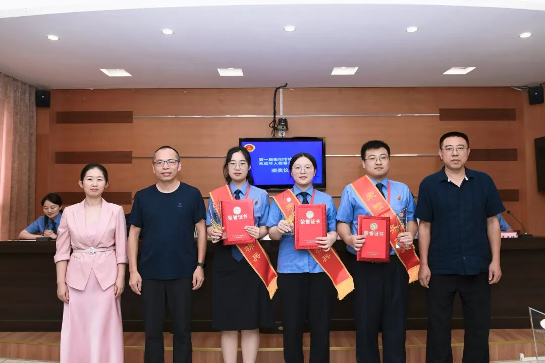 9月10日至12日,衡阳市检察机关举办第一届未成年人检察业务竞赛,蒸湘区人民检察院谭霁月同志凭借专业的业务素养、敏锐的思辨能力和出色的临场表现,以优异的成绩获评“未成年人检察业务标兵”称号。(左三)