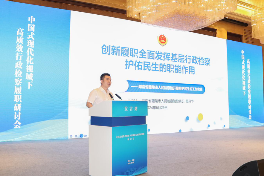 作为七个基层检察院之一,株洲市醴陵市人民检察院党组书记、检察长陈伟华以《创新履职全面发挥基层行政检察护佑民生的职能作用》为题作交流发言。从聚焦主责主业,夯实诉讼各环节监督;服务中心大局,以专项活动、反向衔接等能动履职方式厚植党的执政根基;创新履职,以搭建数据平台、建立数据监督模型、民事行政融合履职等方式,推动“检护民生”专项行动走深走实三个方面,介绍了醴陵市检察院运用行政检察现代化体系,服务民生的生动实践。
