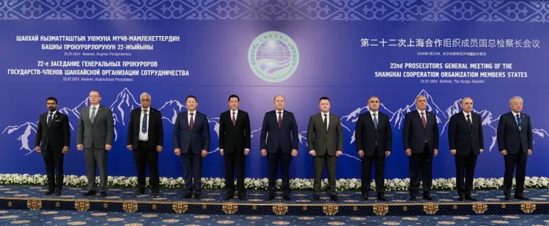 当地时间7月25日,第二十二次上海合作组织成员国总检察长会议在吉尔吉斯共和国首都比什凯克召开,主题是“检察机关在现代世界和数字化时代的作用——上合组织国家应对新的威胁、保障人权的经验”。这次会议是白俄罗斯成为上合组织成员国后召开的首次上合组织成员国总检察长会议,上合组织10个成员国、对话伙伴国阿塞拜疆派检察代表团,上合组织秘书处、地区反恐机构派员参加会议。中华人民共和国首席大检察官、最高人民检察院检察长应勇率中国检察代表团出席会议。会议由吉尔吉斯斯坦总检察院主办,吉尔吉斯斯坦总统扎帕罗夫以视频形式致辞,吉尔吉斯斯坦总检察长阿桑纳利耶夫主持会议。应勇和与会各代表团团长围绕会议主题,现场或以线上视频形式分别作主旨发言。