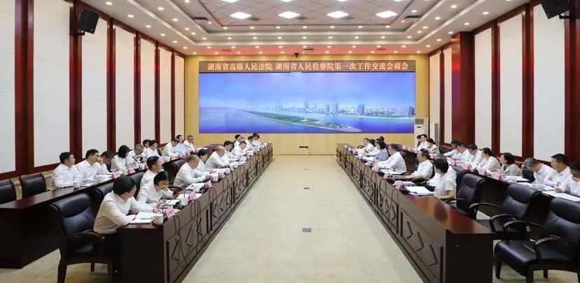 10月11日,湖南省高级人民法院与湖南省人民检察院在省法院召开第一次工作交流会商会,学思践悟习近平法治思想,深入学习贯彻党的二十届三中全会精神和省委十二届七次全会精神,一体落实最高法、最高检关于建立两院工作交流会商机制的部署要求,共同研究解决当前司法办案中的重大问题,以司法工作现代化支撑和服务中国式现代化。省法院党组书记、院长朱玉,省检察院党组书记、检察长叶晓颖出席会议并讲话。