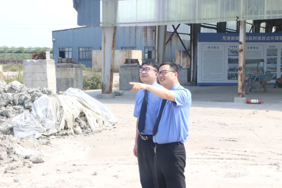 现场勘查龙港新城围垦区临时垃圾堆放点