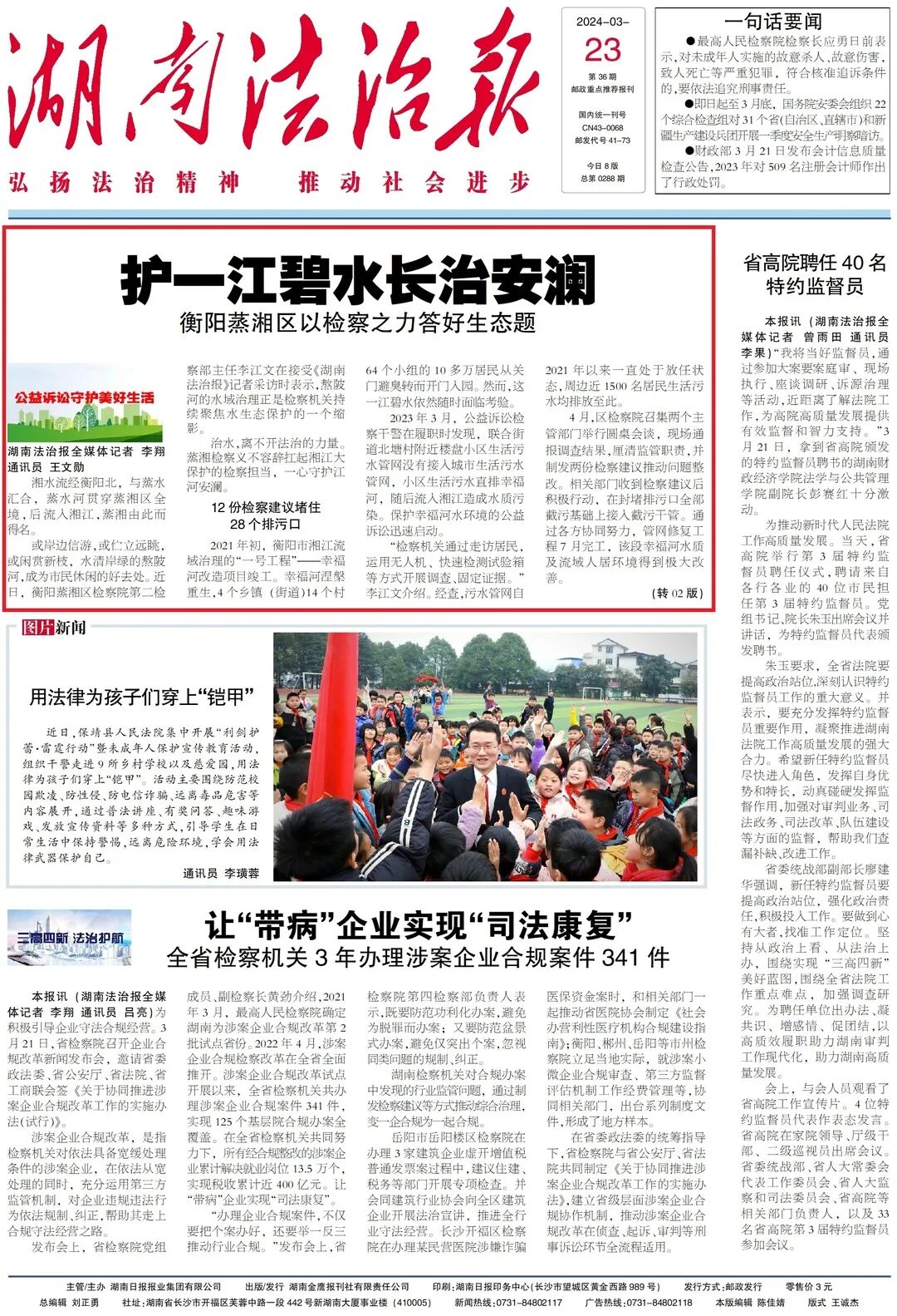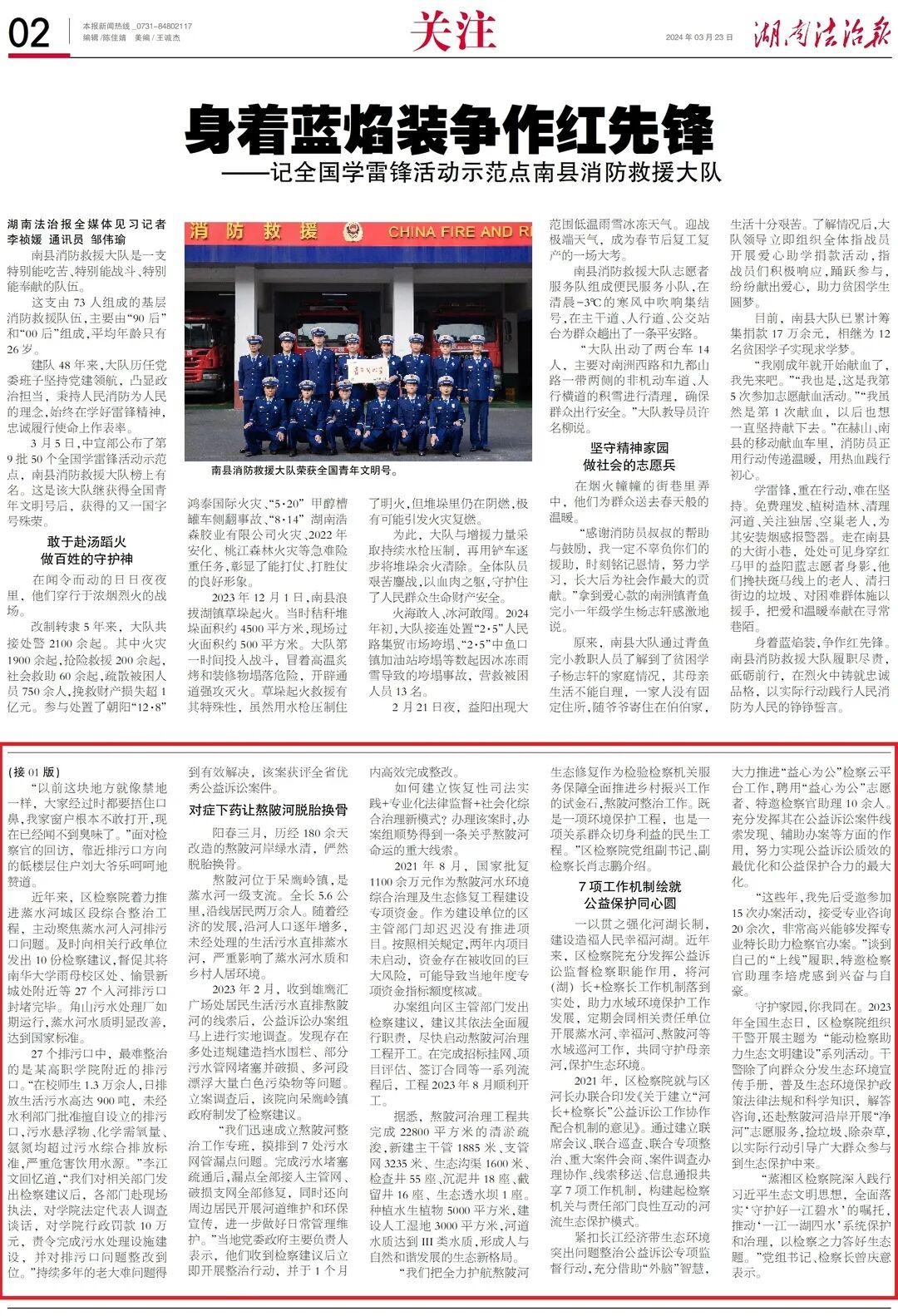 “蒸湘区检察院深入践行习近平生态文明思想,全面落实‘守护好一江碧水’的嘱托,推动‘一江一湖四水’系统保护和治理,以检察之力答好生态题。”党组书记、检察长曾庆意表示。