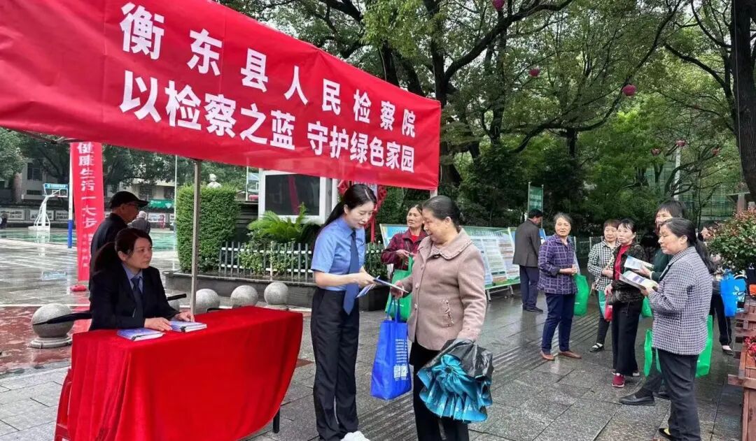 衡东县检察院在县文化体育广场组织开展“以检察之蓝,守护绿色家园”环保宣传活动。