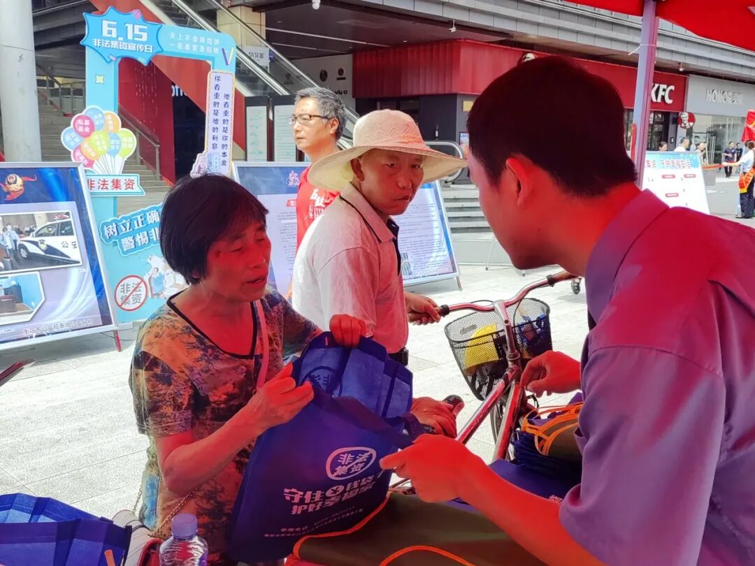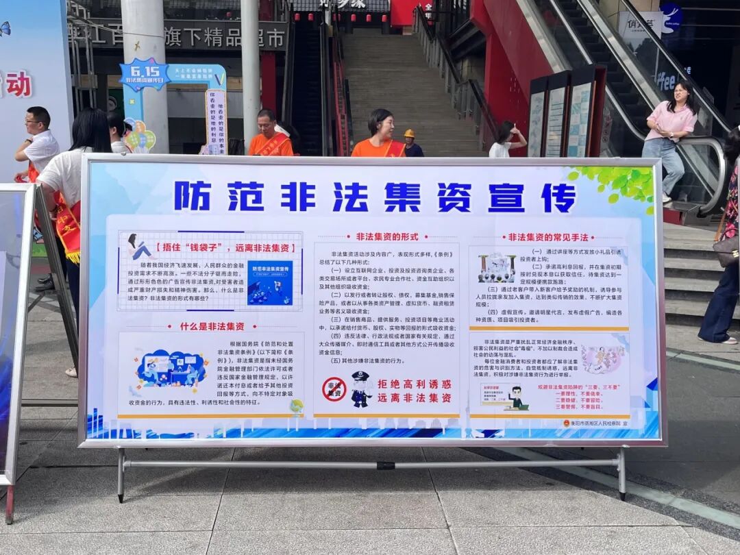 为深入贯彻落实《防范和处置非法集资条例》,进一步打击和防范非法集资经济犯罪,提升社会公众防范非法集资的意识和能力,6月15日,在蒸湘区打击和处置非法集资工作领导小组的统一部署下,蒸湘区检察院组织干警前往金钟大雁城开展以“守住钱袋子、护好幸福家”为主题的防范非法集资普法宣传活动。