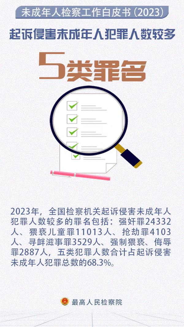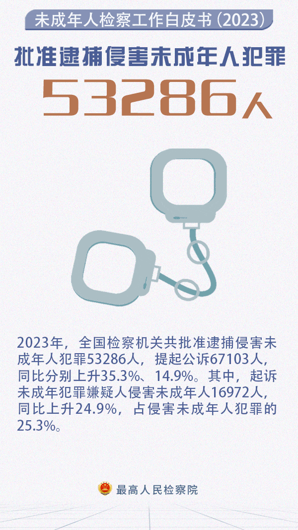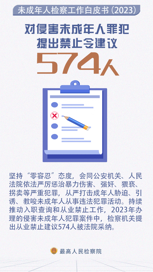 当前,打击侵害未成年人犯罪呈现出哪些趋势?未成年人“四大检察”业务开展情况如何?5月31日,最高检发布《未成年人检察工作白皮书(2023)》。一组动效海报带你速览要点!