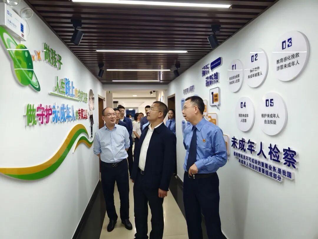 曾梦龙一行实地察看了12309检察服务中心、受案中心、未检办案区、图书室、影音室、廉政文化长廊等场所,观看了区检察院平安建设专题片《忠诚担当护正义 执法为民铸检魂》,并对基层党建、清廉建设、“四大活动”工作情况进行专题调研,院党组书记、检察长曾庆意向调研组一行汇报了相关工作情况。
