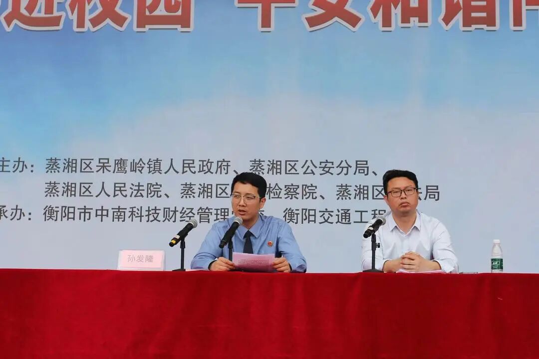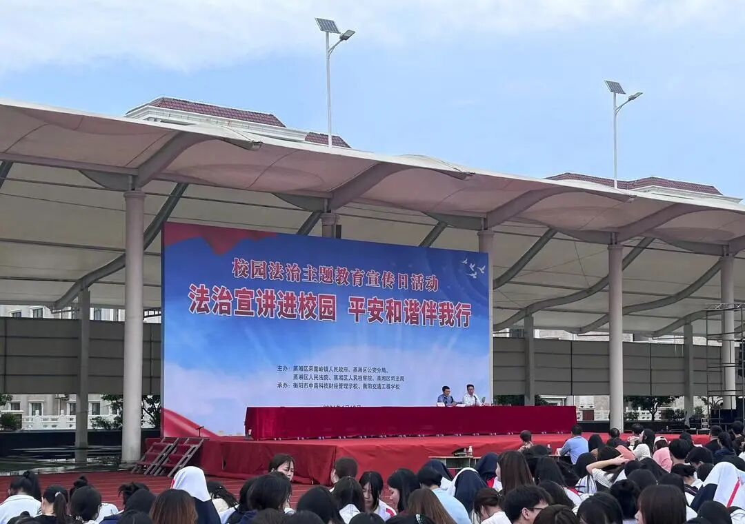 为进一步加强对未成年人的保护,预防未成年人违法犯罪,营造健康的校园成长环境,落实“利剑护蕾·雷霆行动”专项行动要求。2024年4月19日上午,蒸湘区人民检察院联合蒸湘区呆鹰岭镇人民政府、蒸湘区公安分局、蒸湘区人民法院、蒸湘区司法局走进衡阳市中南科技财经管理学校,开展以“法治宣讲进校园,安全和谐伴我行”为主题的宣传活动。