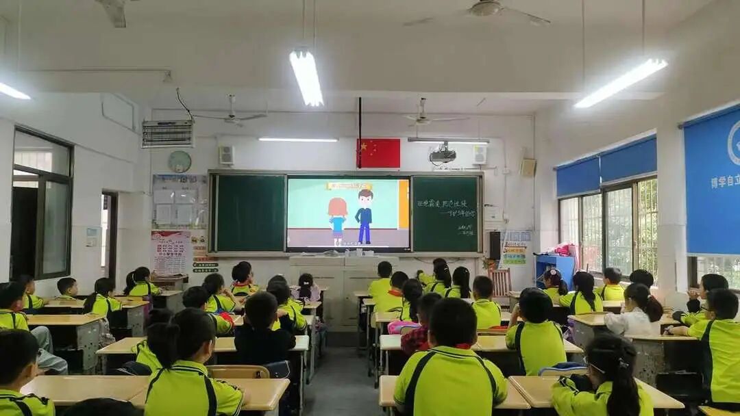 原来,这是蒸湘区人民检察院赴立新小学开展法治进校园活动,上课的“老师”是一名检察干警。为有针对性地开展普法教育,活动开展前,授课干警与立新小学老师沟通,详细了解小学生的学法需求,结合当前未成年人保护工作的重点和热点确定授课内容。