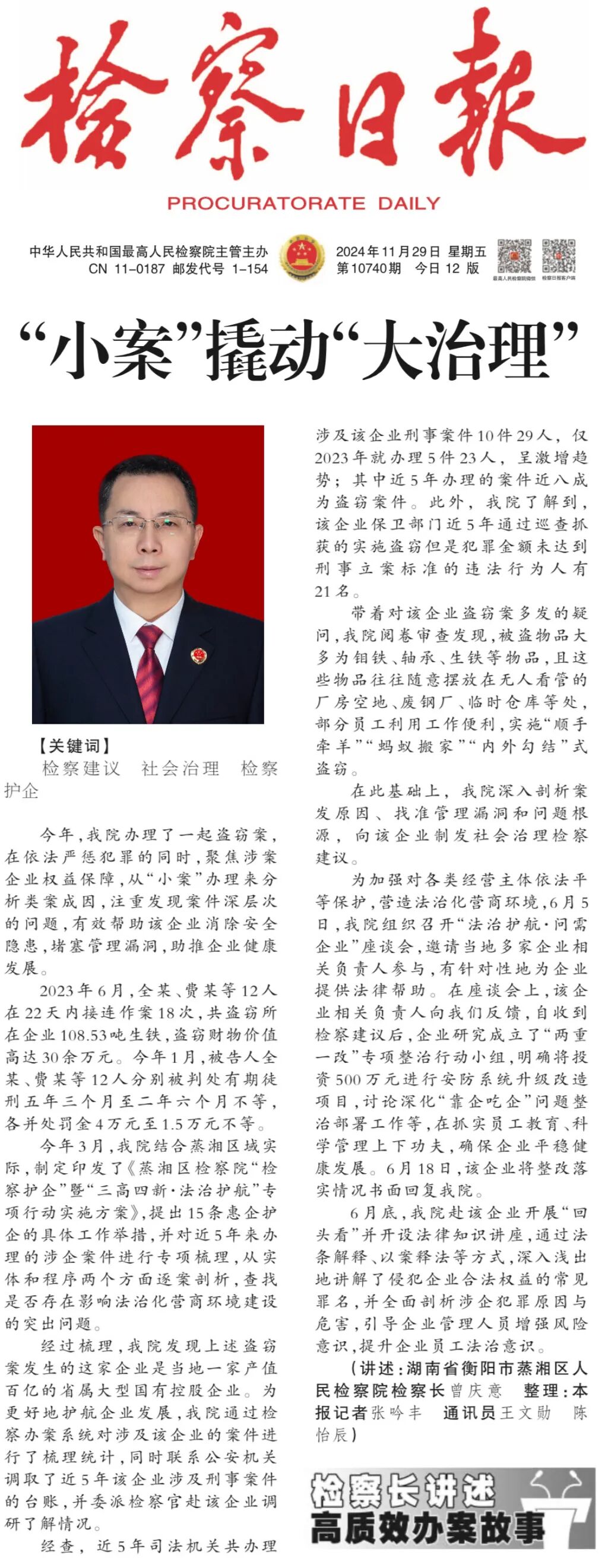 本报讯(讲述:湖南省衡阳市蒸湘区人民检察院检察长曾庆意 记者张吟丰 通讯员 王文勋 陈怡辰)