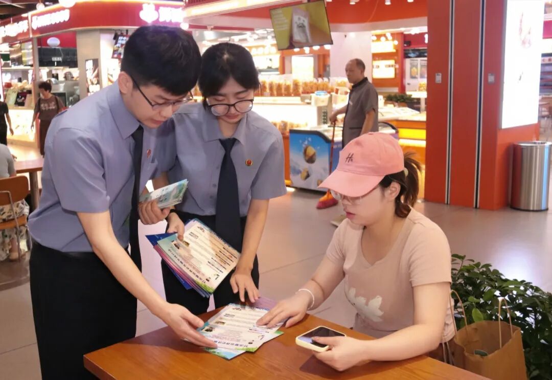 “最新防诈骗资料,大家一定要看看...”7月14日上午,在衡阳市蒸湘区步步高超市入口处,蒸湘区人民检察院的干警们正拿着一叠宣传册向市民们介绍。