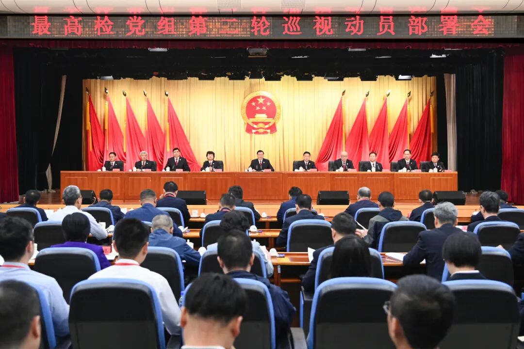 最高人民检察院党组第二轮巡视动员部署会4月22日在京召开。最高检党组书记、检察长应勇出席会议并强调,要深入学习贯彻习近平新时代中国特色社会主义思想,深刻领悟习近平总书记关于党的自我革命的重要思想和关于巡视工作的重要指示精神,认真贯彻新修订的《中国共产党巡视工作条例》(以下简称《条例》),落实二十届中央纪委三次全会精神和全国巡视工作会议暨二十届中央第三轮巡视动员部署会精神,牢牢把握政治巡视定位,认真贯彻中央巡视工作方针,始终把“两个维护”作为根本任务,不断提高巡视监督质效,充分发挥巡视利剑作用,努力以系统内巡视新成效推动检察工作新发展,为以检察工作现代化支撑和服务中国式现代化提供坚强保障。