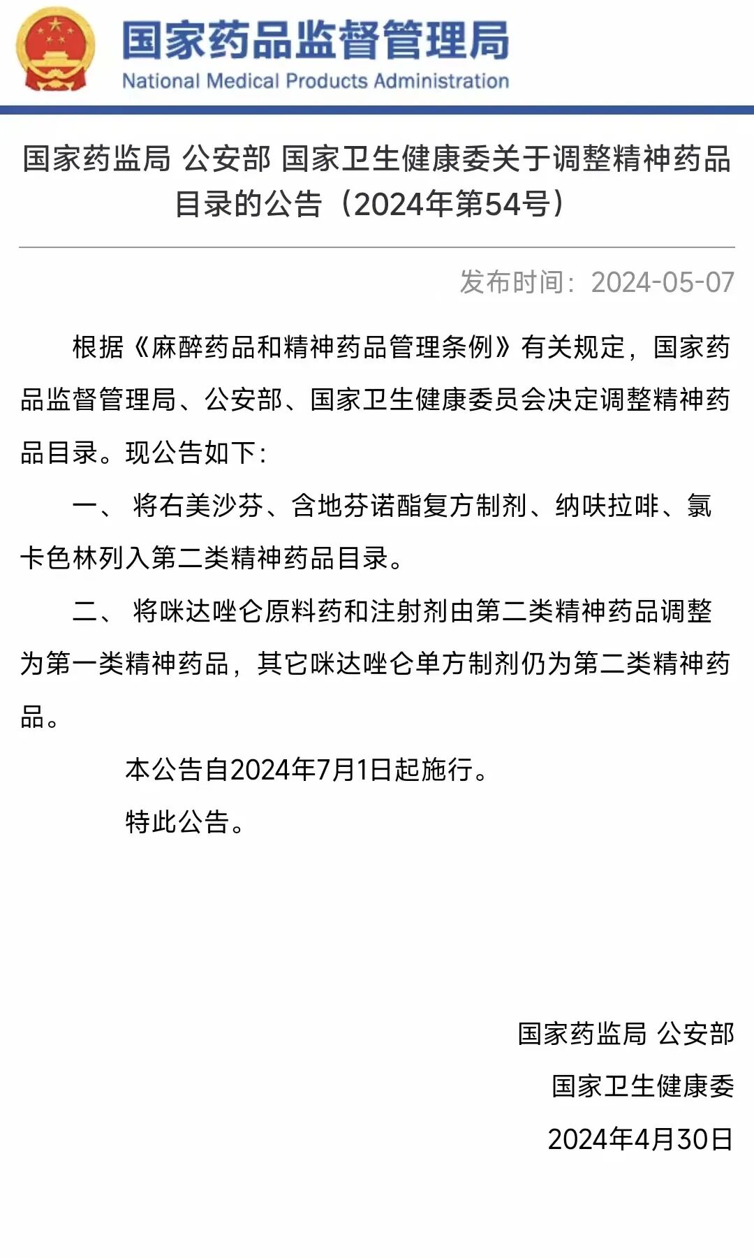 时间:2024-05-07 作者: 新闻来源:国家药监局、公安部、国家卫生健康委 【字号:
