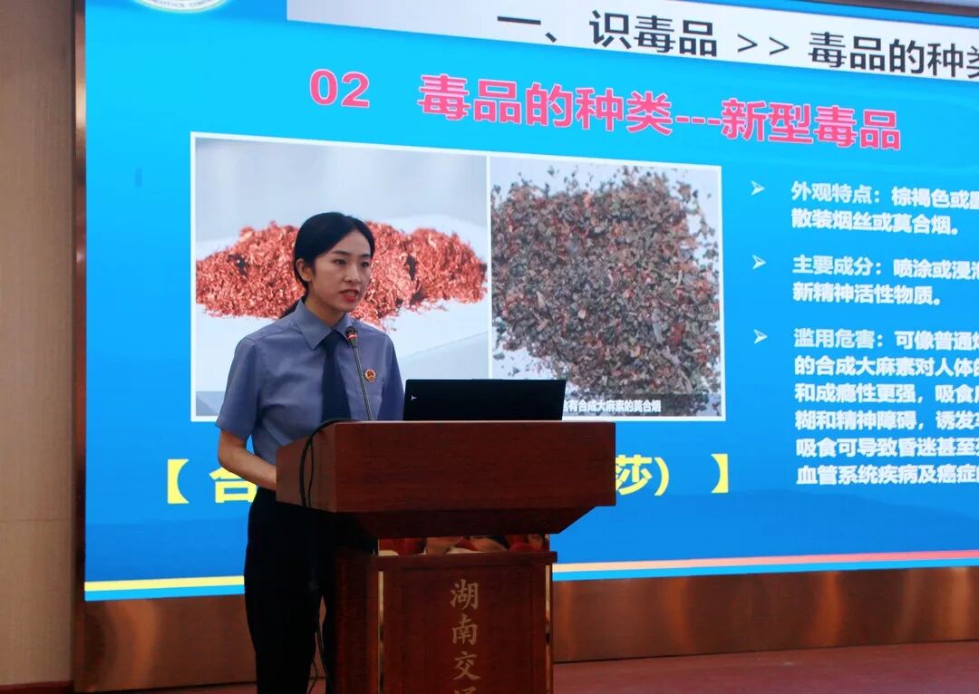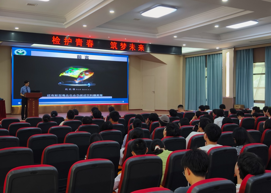 为进一步提高青少年识毒、防毒、拒毒的能力,筑牢校园禁毒防线。6月19日下午,蒸湘区人民检察院干警以“检护青春,筑梦未来”为主题,在湖南交通工程学院开展禁毒宣传活动。