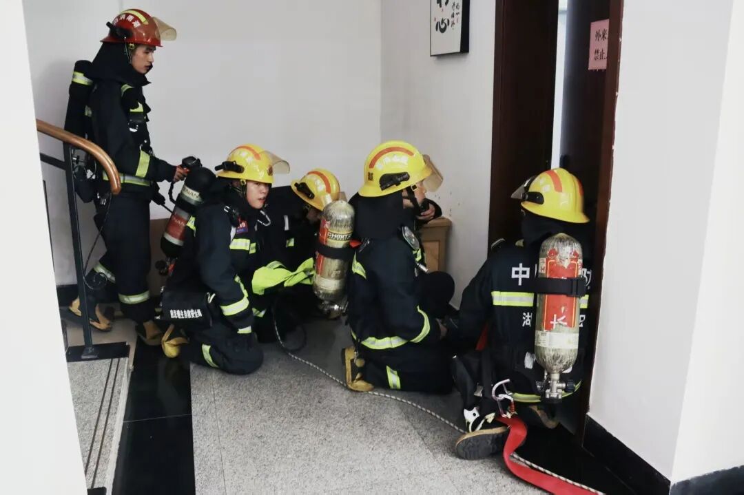 在模拟火灾现场中,工作人员协助设置警戒区域,消防员演示灭火流程,给全院上了一堂直观的“消防安全课”。