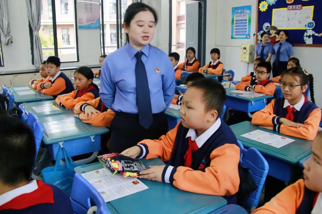 “同学们,知道怎么分辨过期食品吗?”“路边摊的辣条能随便买吗?”9月24日,衡阳市人民检察院与蒸湘区人民检察院组成的“法治宣讲团”走进衡州小学,将“食品安全”与“知识产权保护”两大主题融入课堂,用互动问答、实例对比的方式,为孩子们送上一堂既实用又生动的法治课,既筑牢“舌尖安全防线”,也播下“尊重知识产权”的种子。